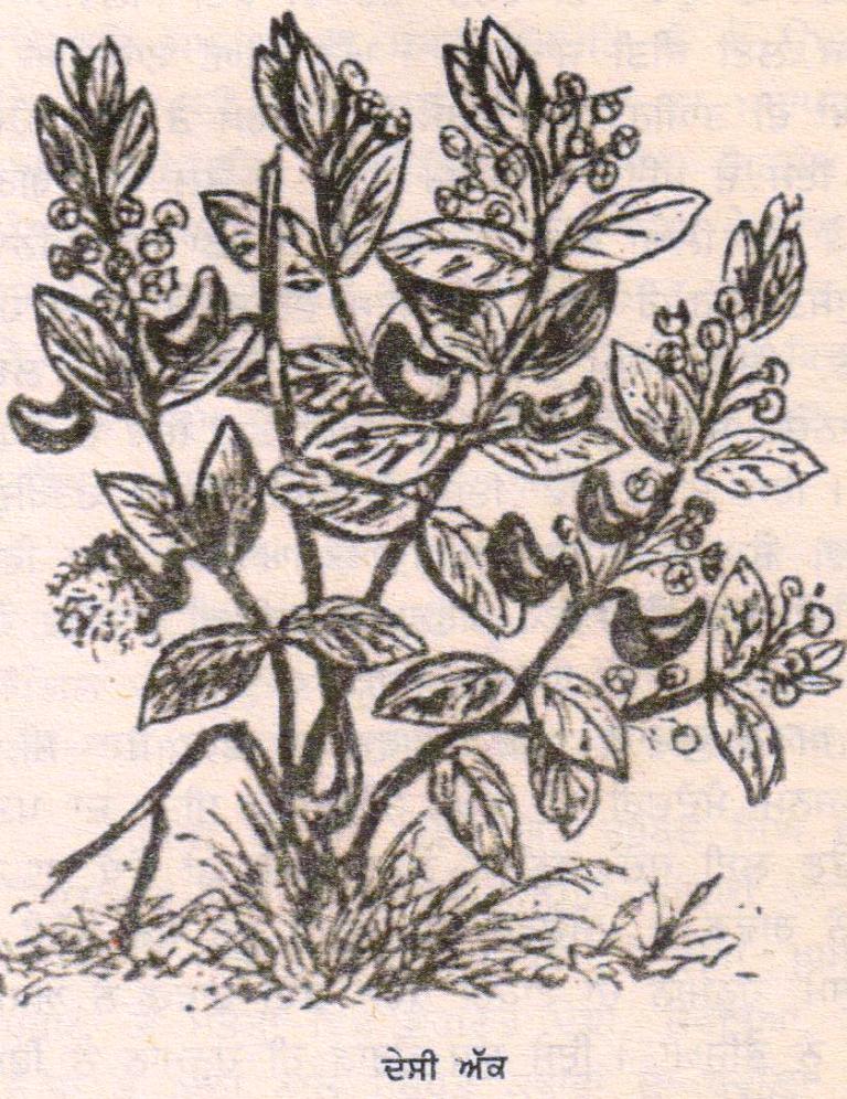 ਦੇਸੀ ਅੱਕ ਦਾ ਪੌਦਾ ਛੋਟਾ ਹੁੰਦਾ ਹੈ ਅਤੇ ਇਸ ਦੇ ਕੋਮਲ ਹਿੱਸਿਆਂ ਤੇ ਖ਼ਾਸ ਕਰਕੇ ਪੱਤਿਆਂ ਦੇ ਹੇਠਲੇ ਹਿੱਸੇ ਤੇ ਸੰਘਣੀ ਪਰ ਬਾਰੀਕ ਲੂਈ ਹੁੰਦੀ ਹੈ। ਇਸ ਦੇ ਫਲ ਵਿਚ ਬਹੁਤ ਸਾਰੇ ਚਪਟੇ ਤੇ ਨੋਕਦਾਰ ਬੀਜ ਹੁੰਦੇ ਹਨ ਜਿਨ੍ਹਾਂ ਉੱਪਰ ਰੇਸ਼ਮ ਵਰਗੇ ਬਾਰੀਕ ਲੰਮੇ ਵਾਲੇ ਹੁੰਦੇ ਹਨ ਅਤੇ ਜਿਨ੍ਹਾਂ ਰਾਹੀਂ ਬੀਜਾਂ ਦੀ ਹਵਾਈ ਉਡਾਣ ਸੁਖਾਲੀ ਹੋ ਜਾਂਦੀ ਹੈ। ਇਨ੍ਹਾਂ ਨੂੰ ਛੋਟੇ ਬੱਚੇ 'ਬੁੱਢੀ ਮਾਈ' ਵੀ ਕਹਿੰਦੇ ਹਨ।