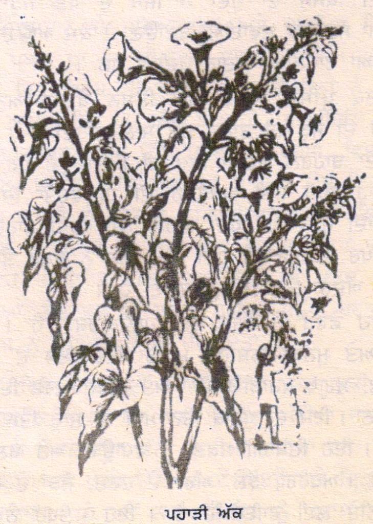 ਪਹਾੜੀ ਅੱਕ ਜਿਸ ਨੂੰ ਗੁਲਾਬੰਦੀ ਅੱਕ ਕਹਿੰਦੇ ਹਨ, ਆਮ ਅੱਕ ਤੋਂ ਵੱਖ ਇਕ ਹੋਰ ਪੌਦਾ ਜਿਸ ਨੂੰ ਪੰਜਾਬ ਵਿਚ ਵਾੜਾਂ ਦੇ ਤੌਰ ਤੇ ਲਾਉਂਦੇ ਹਨ। ਇਹ ਬਹੁਤ ਉੱਚਾ ਹੁੰਦਾ ਹੈ। ਇਸ ਦੇ ਪੱਤੇ ਨਰਮ, ਮੁਲਾਇਮ ਅਤੇ ਗੂੜ੍ਹੇ ਹਰੇ ਹੁੰਦੇ ਹਨ। ਇਸ ਦੇ ਫੁੱਲ ਵੱਡੇ ਵੱਡੇ, ਚਿੱਟੇ ਜਾਮਣੀ ਰੰਗ ਦੇ ਹੁੰਦੇ ਹਨ। ਇਸ ਨੂੰ ਕੁਕੜੀਆਂ ਨਹੀਂ ਲਗਦੀਆਂ ਅਤੇ ਨਾ ਹੀ ਇਸ ਵਿਚ ਦੁੱਧ ਹੁੰਦਾ ਹੈ।