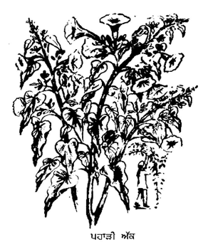 ਪਹਾੜੀ ਅੱਕ ਆਮ ਤੌਰ ਤੇ ਖੇਤਾਂ ਦੀਆਂ ਵਾੜਾਂ ਤੇ ਲਗਾਇਆ ਜਾਂਦਾ ਹੈ। ਇਸ ਦਾ ਕੱਦ ਬਹੁਤ ਉੱਚਾ ਹੁੰਦਾ ਹੈ। ਇਸ ਦੇ ਪੱਤੇ ਨਰਮ, ਮੁਲਾਇਮ ਅਤੇ ਗੂੜ੍ਹੇ ਹਰੇ ਰੰਗ ਦੇ ਹੁੰਦੇ ਹਨ। ਇਸ ਦੇ ਫੁੱਲ ਵੱਡੇ ਵੱਡੇ ਗੁਲਾਬੀ ਜਾਂ ਜਾਮਨੀ ਰੰਗ ਦੇ ਹੁੰਦੇ ਹਨ। ਤਣੇ ਉਪਰ ਕੰਡੇ ਵੀ ਹੁੰਦੇ ਹਨ।