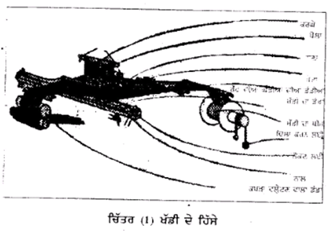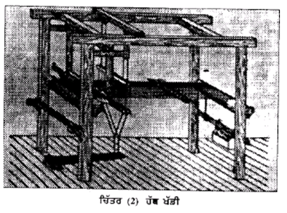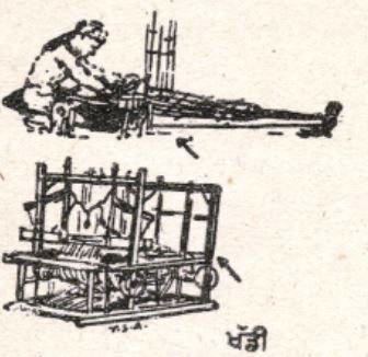 ਉਪਰੋਕਤ ਵਿਚੋਂ ਪਹਿਲੇ ਅੱਧ ਕਾਰਜਾਂ ਦੀ ਵਿਆਖਿਆ ਚਿੱਤਰ (1) ਵਿਚ ਕੀਤੀ ਗਈ ਹੈ। ਬੁਣਤੀ ਕਰਨ ਲਈ ਤਾਣੇ ਵਾਲੇ ਧਾਗਿਆਂ ਨੂੰ ਰੱਛ ਜਾਂ ਕੰਘੀ ਜਾਂ ਕਰਘਾਂ ਦੀ ਸਹਾਇਤਾ ਨਾਲ ਕ੍ਰਮਵਾਰ ਉਪਰ ਥੱਲੇ ਕਰਕੇ ਪੇਟੇ ਵਾਲੀ ਨਾਲ ਨੂੰ ਵਿਚੋਂ ਦੀ ਲੰਘਾਇਆ ਜਾਂਦਾ ਹੈ ਅਤੇ ਪੋਲੇ ਨਾਲ ਠੋਕਿਆ ਜਾਂਦਾ ਹੈ। ਮੱਧਵਰਤੀ ਭੌਣੀਆਂ ਜਾਂ ਭਾਰ ਬੰਨ੍ਹ ਕੇ ਬੁਣੇ ਹੋਏ ਕੱਪੜੇ ਨੂੰ ਸਰਕਾਇਆ ਜਾਂਦਾ ਹੈ ਜਿਸ ਨਾਲ ਕੱਪੜੇ ਵਿਚ ਤਣਾਉ ਵੀ ਬਣਿਆ ਰਹਿੰਦਾ ਹੈ ਅਤੇ ਕੱਪੜਾ ਸਰਕਦਾ ਵੀ ਰਹਿੰਦਾ ਹੈ।