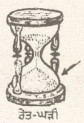 –ਰੇਤ ਘੜੀ ਇਸਤਰੀ ਲਿੰਗ : ਪਿਛਲੇ ਸਮਿਆਂ ਵਿੱਚ ਵਕਤ ਦਾ ਅੰਦਾਜ਼ਾ ਲਾਉਣ ਲਈ ਦੋ ਸ਼ੀਸ਼ੇ ਦੀਆਂ ਜੁੜੀਆਂ ਸੁਰਾਹੀਆਂ ਜੇਹੀਆਂ ਜਿਨ੍ਹਾਂ ਵਿੱਚ ਰੇਤ ਭਰੀ ਹੁੰਦੀ ਸੀ ਤੇ ਇੱਕ ਘੰਟੇ ਪਿੱਛੋਂ ਹੇਠਲੀ ਸੁਰਾਹੀ ਵਿੱਚ ਕਿਰ ਜਾਂਦੀ ਸੀ