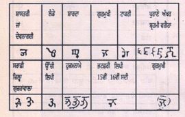 ਪੰਜਾਬ ਦੀਆਂ ਹੋਰ ਲਿਪੀਆਂ ਤੇ ਲਿਖਤਾਂ ਦਾ ਟਾਕਰਾ ਗੁਰਮੁਖੀ ਦੇ ‘ਜ’ ਅੱਖਰ ਨਾਲ ਹੇਠਾਂ ਦਿੱਤੀਆਂ ਸਾਰਣੀਆਂ ਅਨੁਸਾਰ ਹੈ––