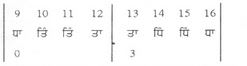 ਅਰਥਾਤ – ਮਾਤਰਾ = 16 ਤਾਲੀ = 1,5,3 ਅਤੇ ਖਾਲੀ 9 ਵੀਂ ਤੇ।