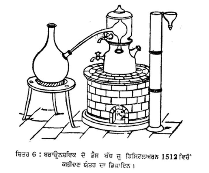ਫ਼ਰਾਂਸ ਦੀ ਬ੍ਰਾਂਡੀ ਵਾਲੀ ਭੱਠੀ ਵਿਚ ਚਾਰਜ ਹੀਟਰ ਦਾ ਵਿਚਾਰ ਹਾਲੇ ਵੀ ਆਧੁਨਿਕ ਨਹੀਂ ਹੈ, ਕਿਉਂ ਕਿ ਅਜਿਹਾ ਹੀ ਡਿਜ਼ਾਇਨ ਐੱਚ. ਬਰਾਊਨ ਸ਼ਵਿਕ (H. Braunschwick) ਨੇ 1512 ਵਿਚ ਛਾਪਿਆ ਸੀ (ਚਿਤਰ6)।