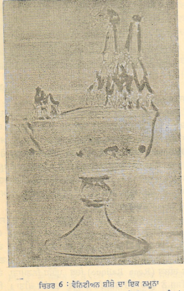 ਵੈਨਿੱਸ (ਇਟਲੀ)––ਸਤਵੀਂ ਸਦੀ ਵਿਚ ਹੀ ਵੈਨਿੱਸ ਦੇ ਨੇੜੇ ਸ਼ੀਸ਼ਾ ਉਦਯੋਗ ਸਥਾਪਤ ਹੋ ਗਿਆ ਸੀ ਅਤੇ ਦਸਵੀਂ ਸਦੀ ਦੇ ਅੰਤ ਤਕ ਇਥੇ ਸ਼ੀਸ਼ੇ ਦੇ ਬਰਤਨ ਬਣਦੇ ਰਹੇ। ਵੈਨਿੱਸ ਦੇ ਹੀ ਬਾਰੋਵੀਅਰ (Barovier) ਨਾਮੀ ਵਿਅਕਤੀ ਨੇ ਅਨੇਮਲਡ ਸ਼ੀਸ਼ੇ ਦੀ ਖੋਜ ਕੀਤੀ ਸੀ। ਬ੍ਰਿਟਿਸ਼ ਮਿਊਜ਼ੀਅਮ ਵਿਚ ਰੱਖੇ ਗੋਬਲਟ (Goblet) ਨਾਮੀ ਬਰਤਨ ਜਿਹੜਾ ਕਿ 1465 ਈ. ਦੇ ਲਗਭਗ ਬਣਿਆ ਦੱਸਿਆ ਜਾਂਦਾ ਹੈ ਤੋਂ ਪਤਾ ਲਗਦਾ ਹੈ ਕਿ ਇਥੋਂ ਦੇ ਕੰਮ ਉੱਤੇ ਕੋਈ ਬਾਹਰੀ ਪ੍ਰਭਾਵ ਨਹੀਂ ਪਿਆ (ਵੇਖੋ ਚਿਤਰ 2)। ਅਜਿਹੇ ਅਨੇਕਾਂ ਨਮੂਨੇ ਗੂੜ੍ਹੇ ਨੀਲੇ, ਹਰੇ ਜਾਂ ਜਾਮਣੀ ਰੰਗਾਂ ਵਿਚ ਮਿਲਦੇ ਸਨ।